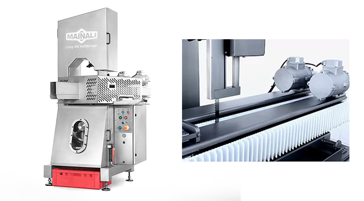 La sierra SPLITTER con transportador divisor dispone de una sierra que trabaja de forma paralela realizando un único corte longitudinal. El transportador divisor con velocidad variable y fácil regulación del ancho de bandas ayuda a conseguir una mejor adaptación del producto. Se trata de una máquina de ciclo continuo, compacta y fácil de usar. El operario ha de introducir el producto entre las bandas y éste sale por el otro lado ya cortado.